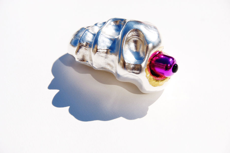 The Coin-Operated Boy hand-held brooch is what you see before you. It is formed from my hand, and electroplated in smooth shining silver, tactile and glorious to touch and fondle. When I feel alone or sad, I touch things, anything, I run my fingers over things, it calms my anxiety. This piece sits inside its plush little box, a box for a bedside table. When you feel lonely you can take it out and hold in in your hand, run your fingers over its indents, or you can you use its contents...